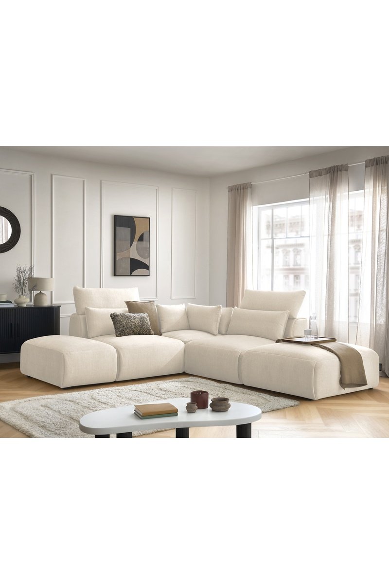 Canapé d'angle modulable Jana - Beige - 5 places - En tissu velours