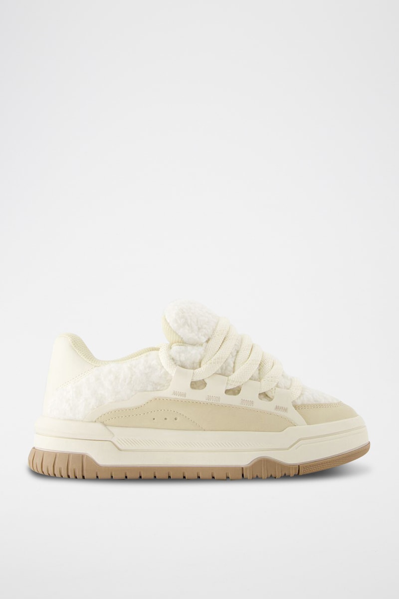 Empiècement en fourrure synthétique devant et sur les côtés.