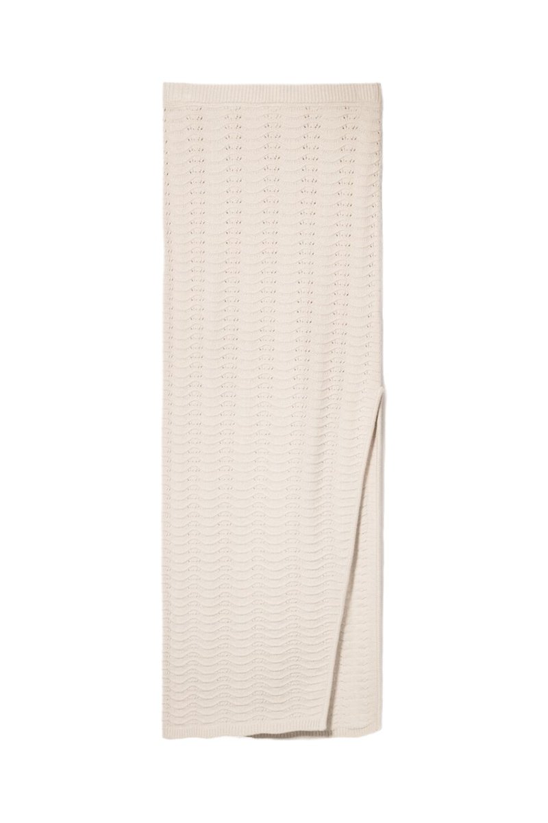 Jupe midi en maille ajourée.