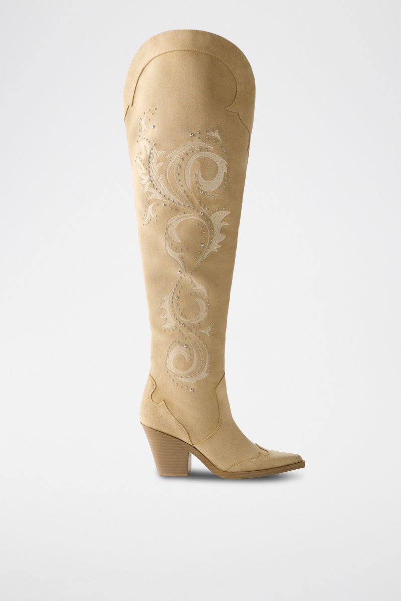 Motifs fantaisie brodés et strass sur le côté extérieur.
