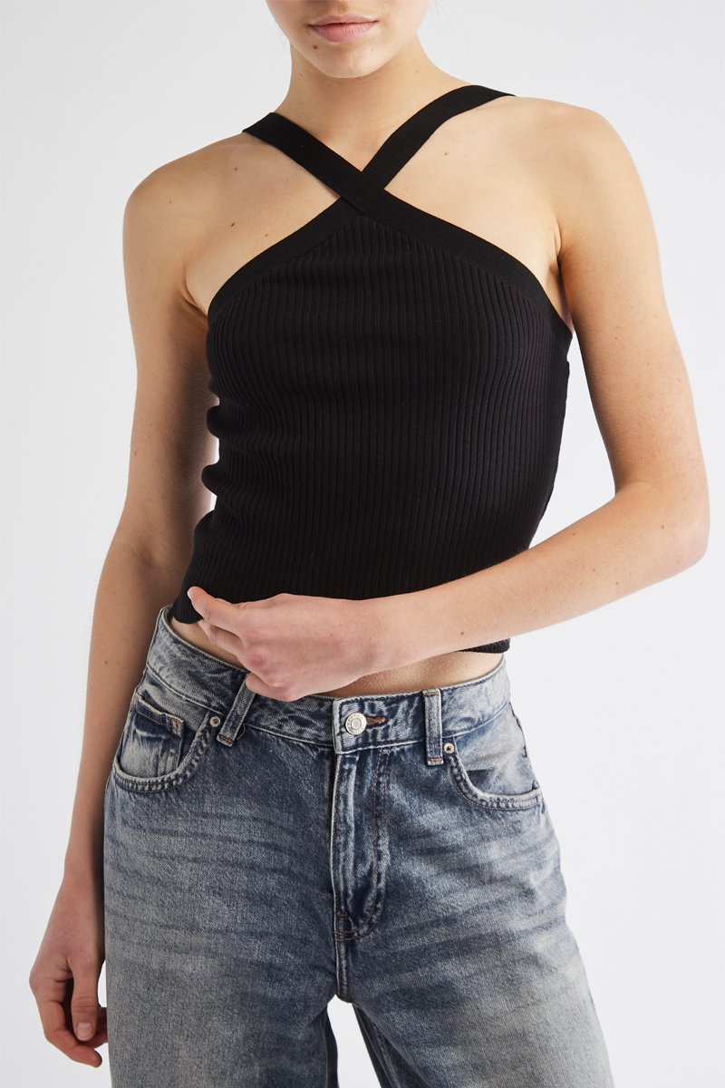 Fines bretelles croisées devant.