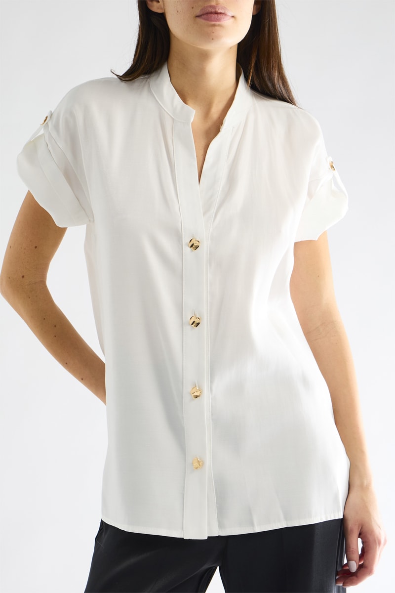 Chemisier à manches courtes retroussables avec patte boutonnée.