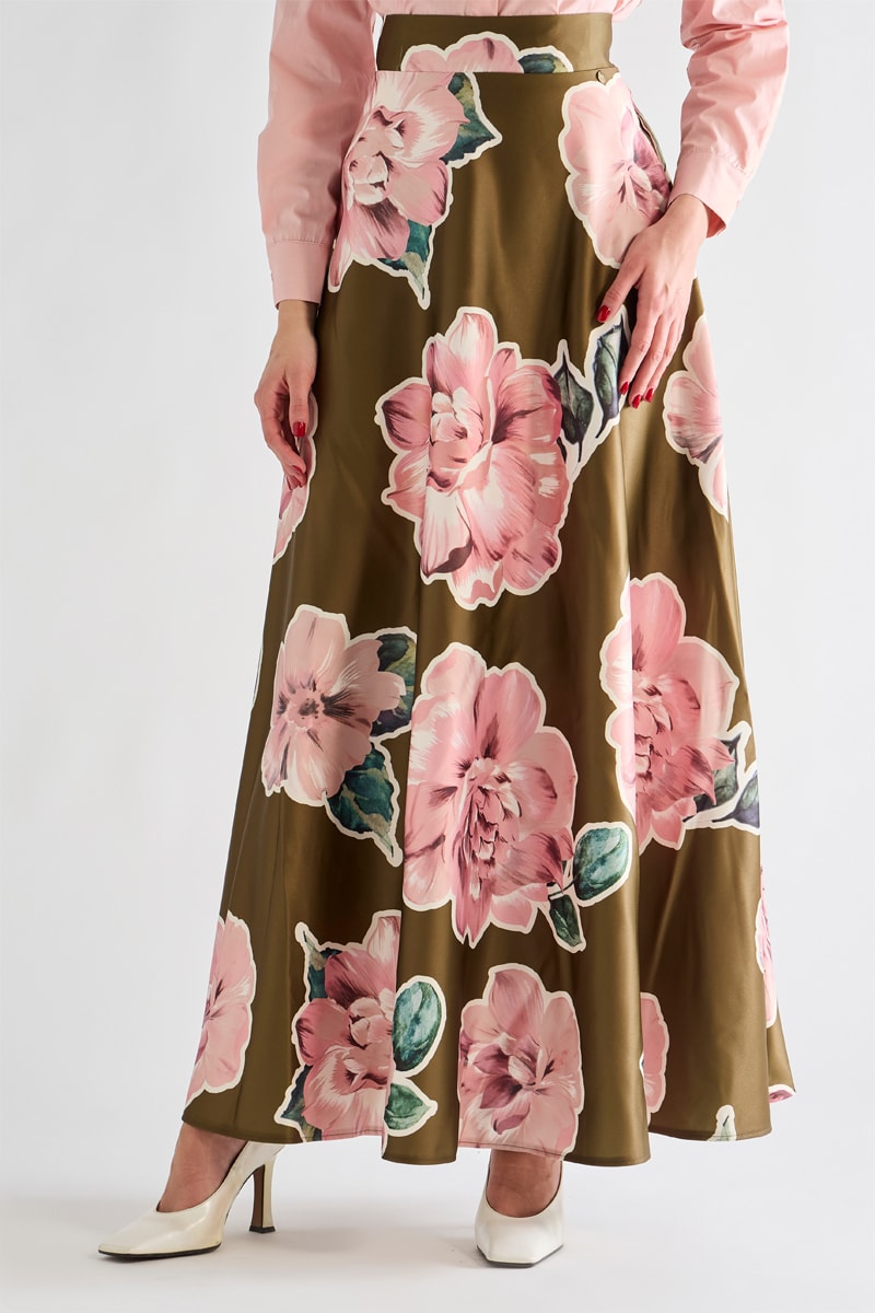 Jupe longue taille haute - Vert olive