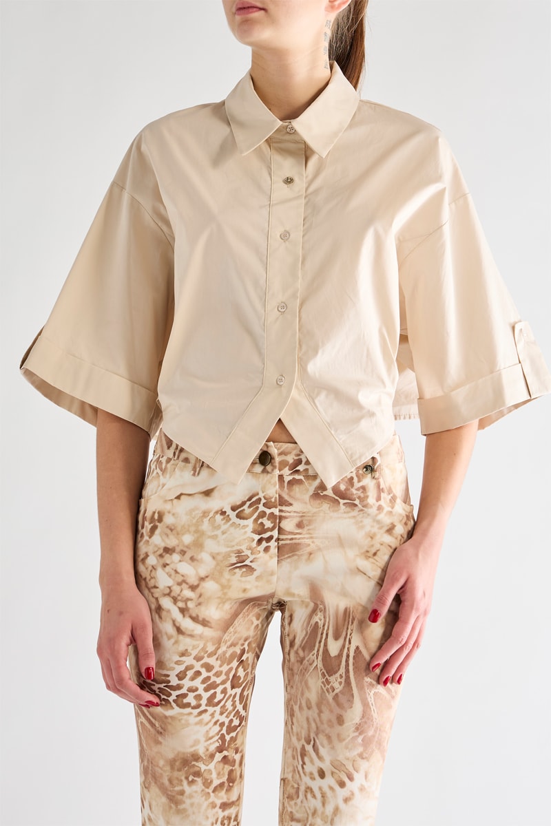 Chemisier à manches 3/4 à revers avec patte boutonnée.