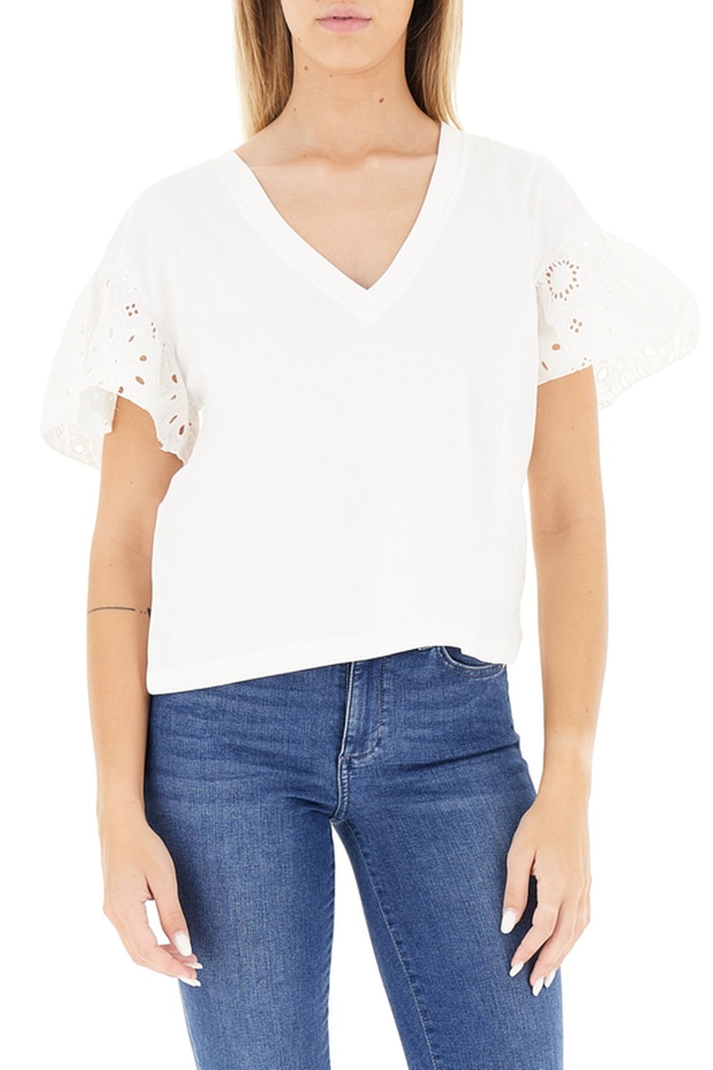 T-shirt à manches courtes volantées en broderie anglaise.