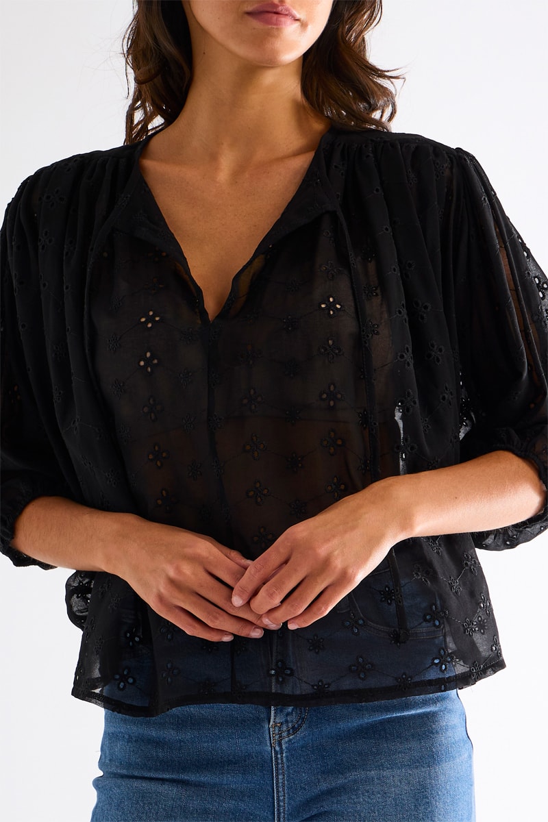 Top en broderie anglaise - Noir