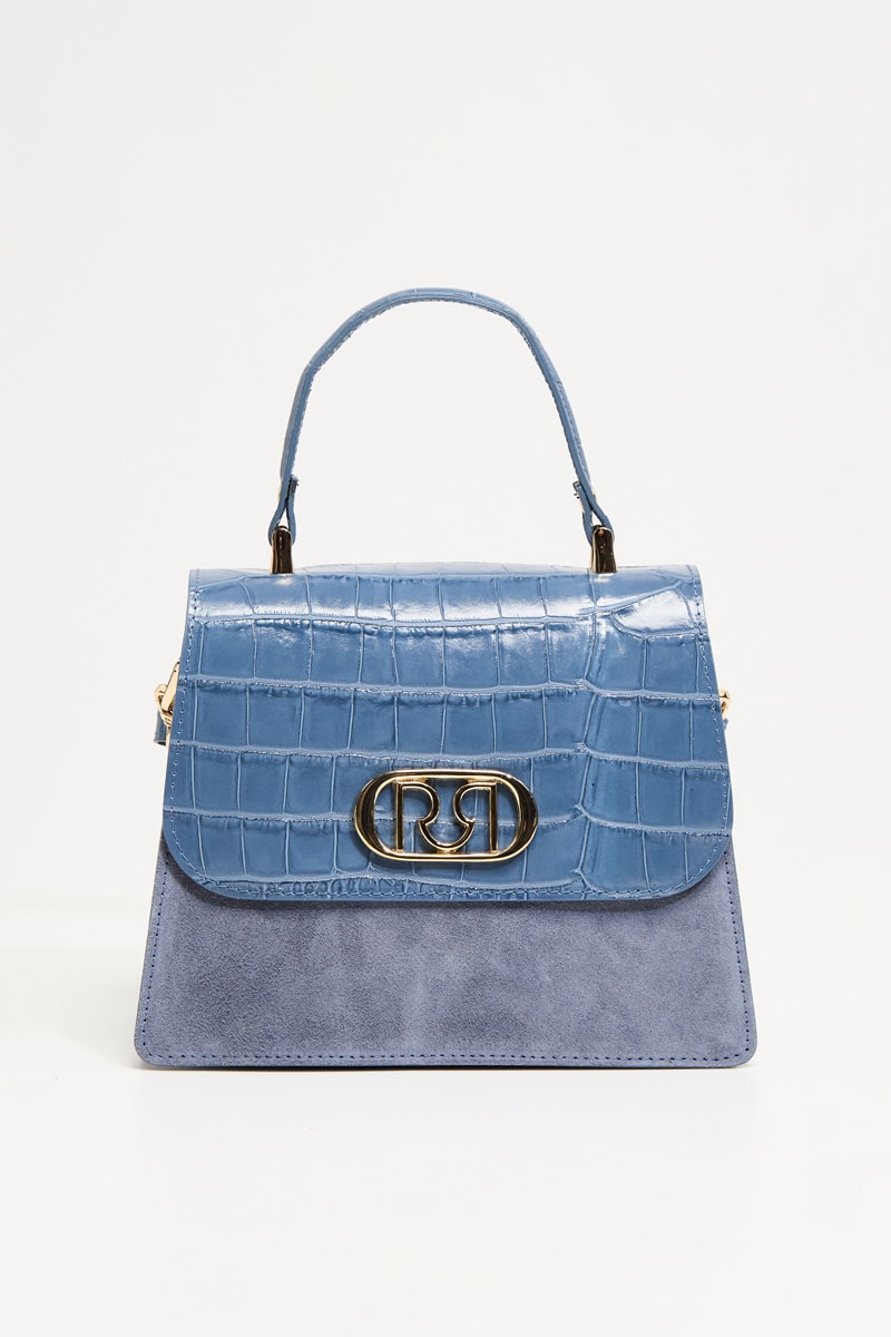 Sac à main en cuir effet croco et nubuck.