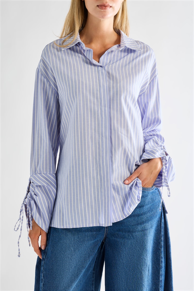 Chemisier à manches longues avec liens de serrage.