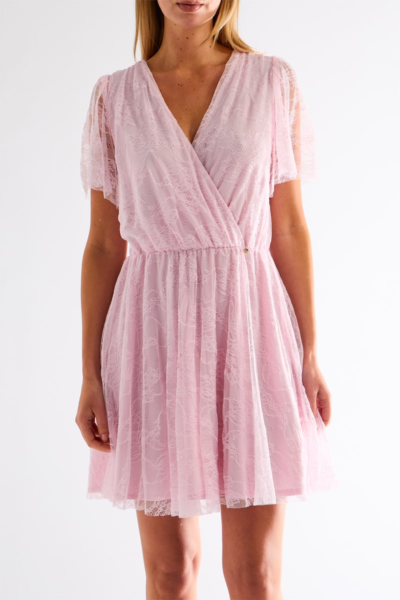 Robe patineuse dentelle - Rose poudré