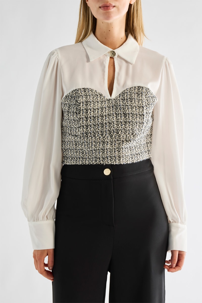 Blouse à manches longues boutonnées.