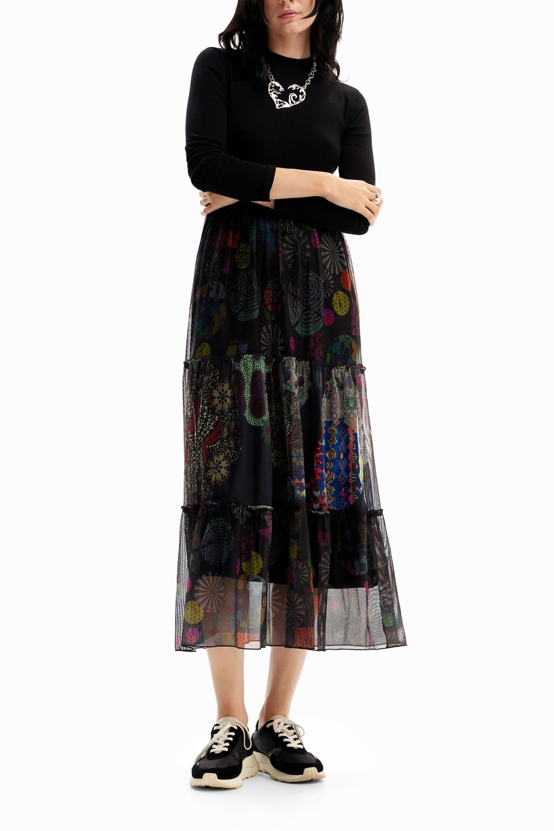 Motifs fantaisie sur la jupe.
