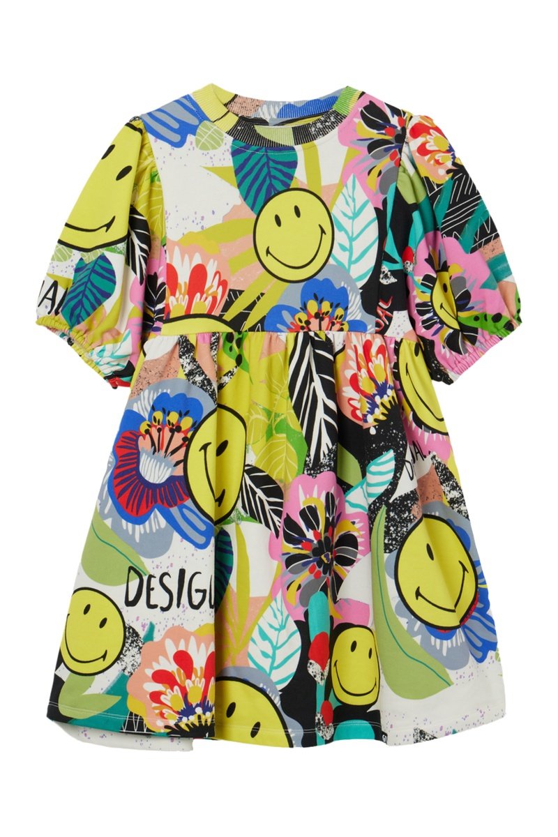 Motifs fleurs et smileys.