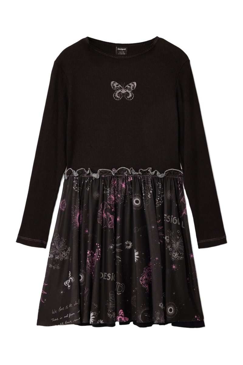 Fronce, lettrage et motifs fantaisie sur la jupe.