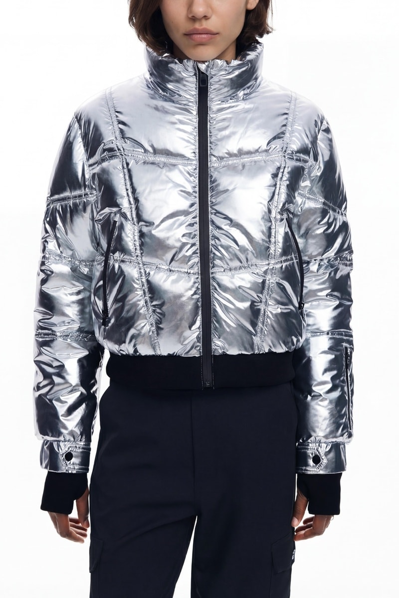 Doudoune à manches longues élastiques avec languette pressionnée.