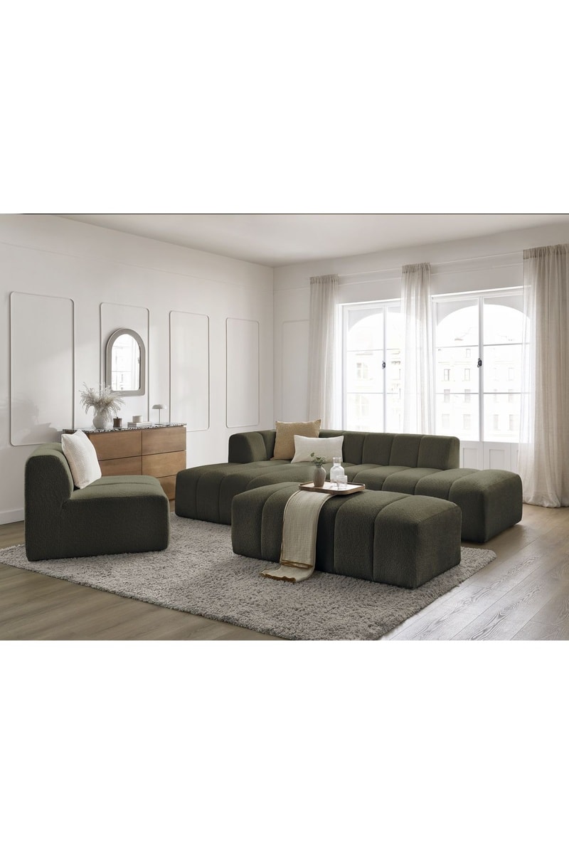 Ensemble canapé d'angle fixe avec chauffeuse et pouf Annecy - 3/1/1 places - Vert - En tissu bouclette