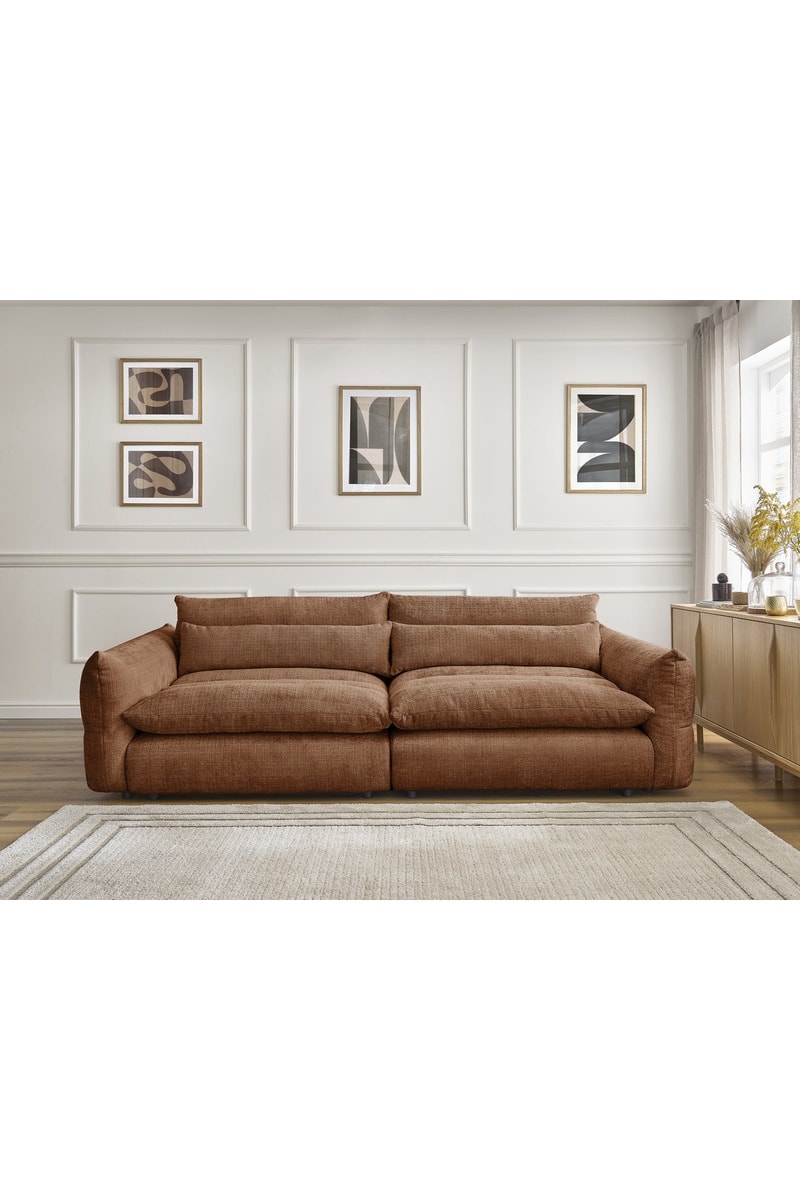 Canapé droit fixe Neil - Orange - 3 places - En tissu texturé