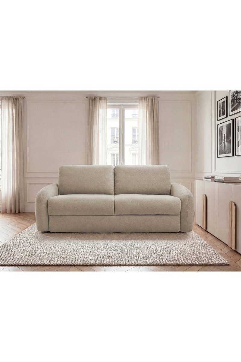 Canapé droit convertible Kenan - Beige - 3 places - En tissu bouclette - Couchage 196 x 160 cm