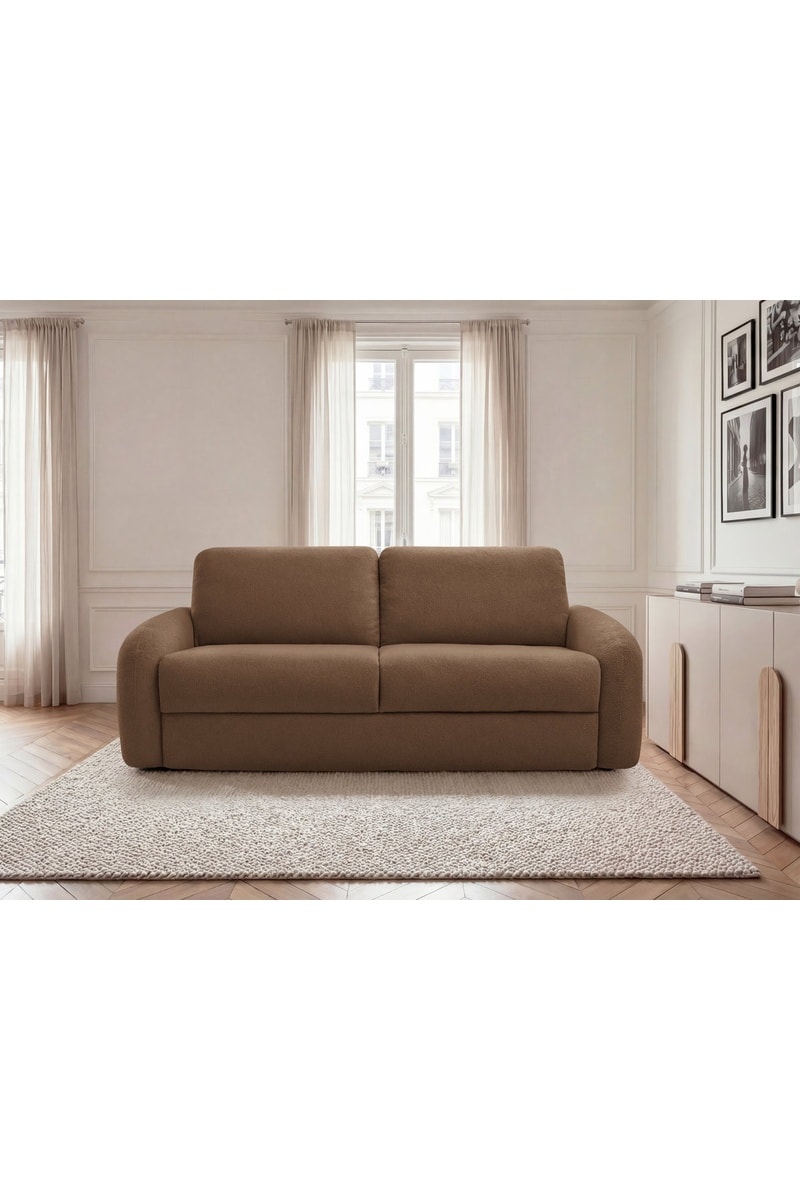 Canapé droit convertible Kenan - Marron - 3 places - En tissu bouclette - Couchage 196 x 160 cm