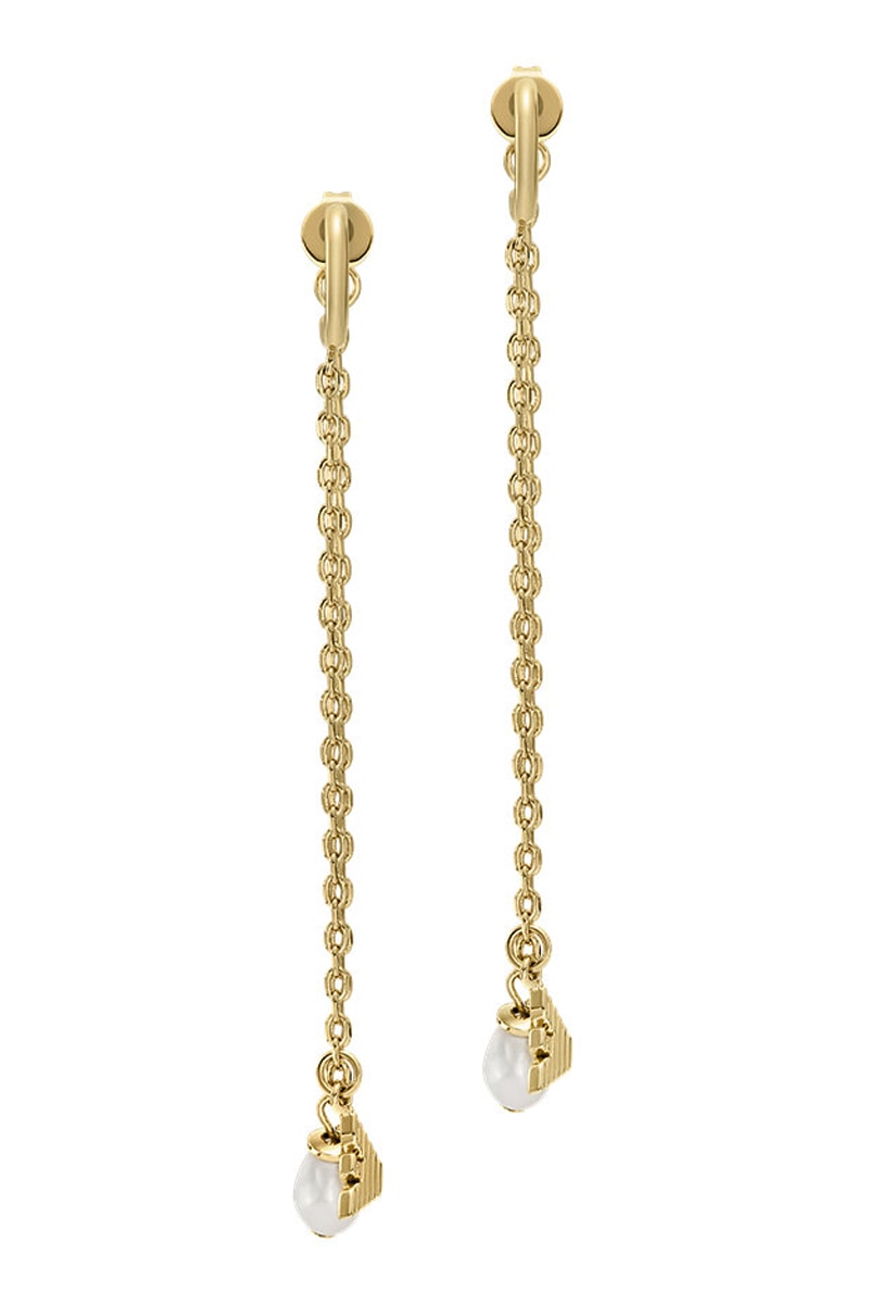 Boucles d'oreilles pendantes serties de perles d'imitation.