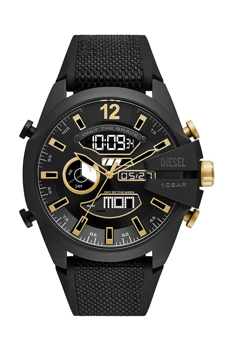 Montre à quartz en nylon et silicone - Noir et doré