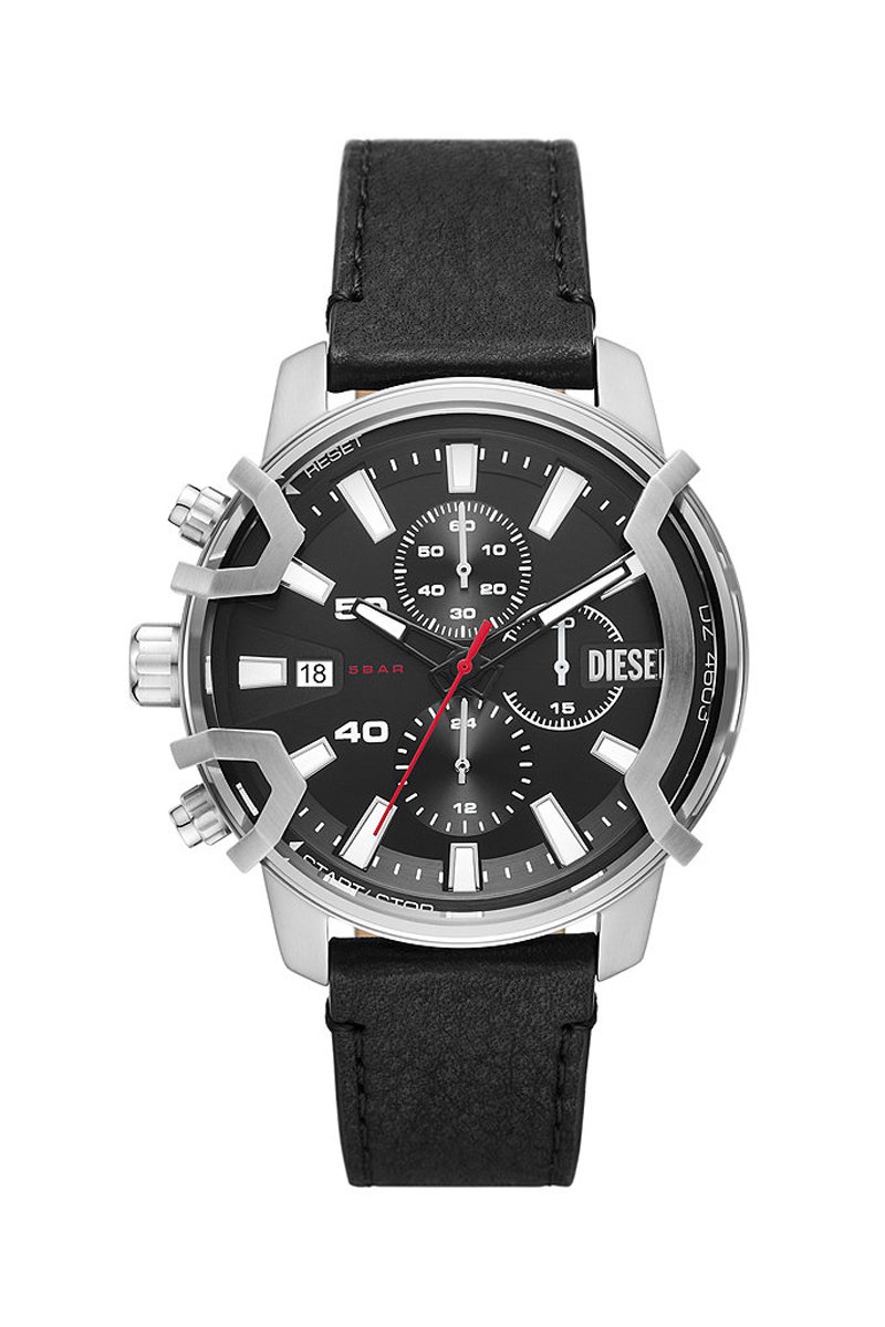 Montre à quartz en cuir - Chronographe - Noir et argenté