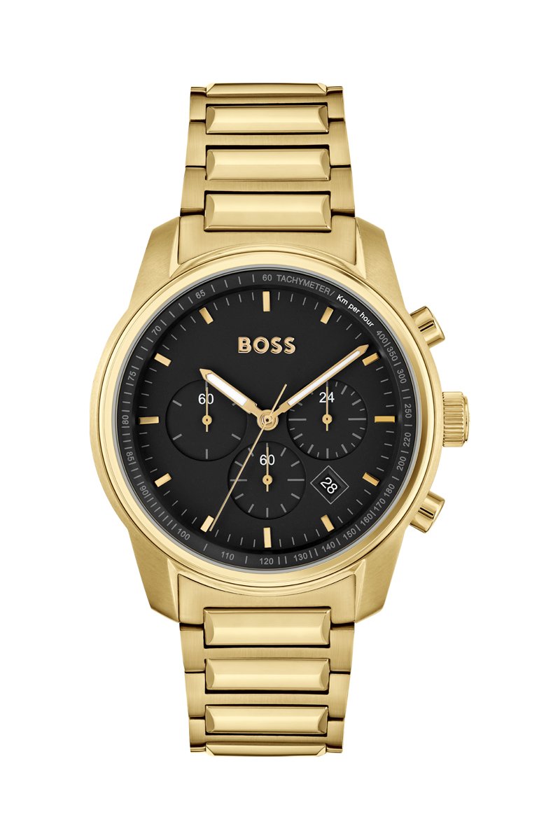 Montre à quartz en acier - Tachymètre et chronographe - Plaqué or jaune