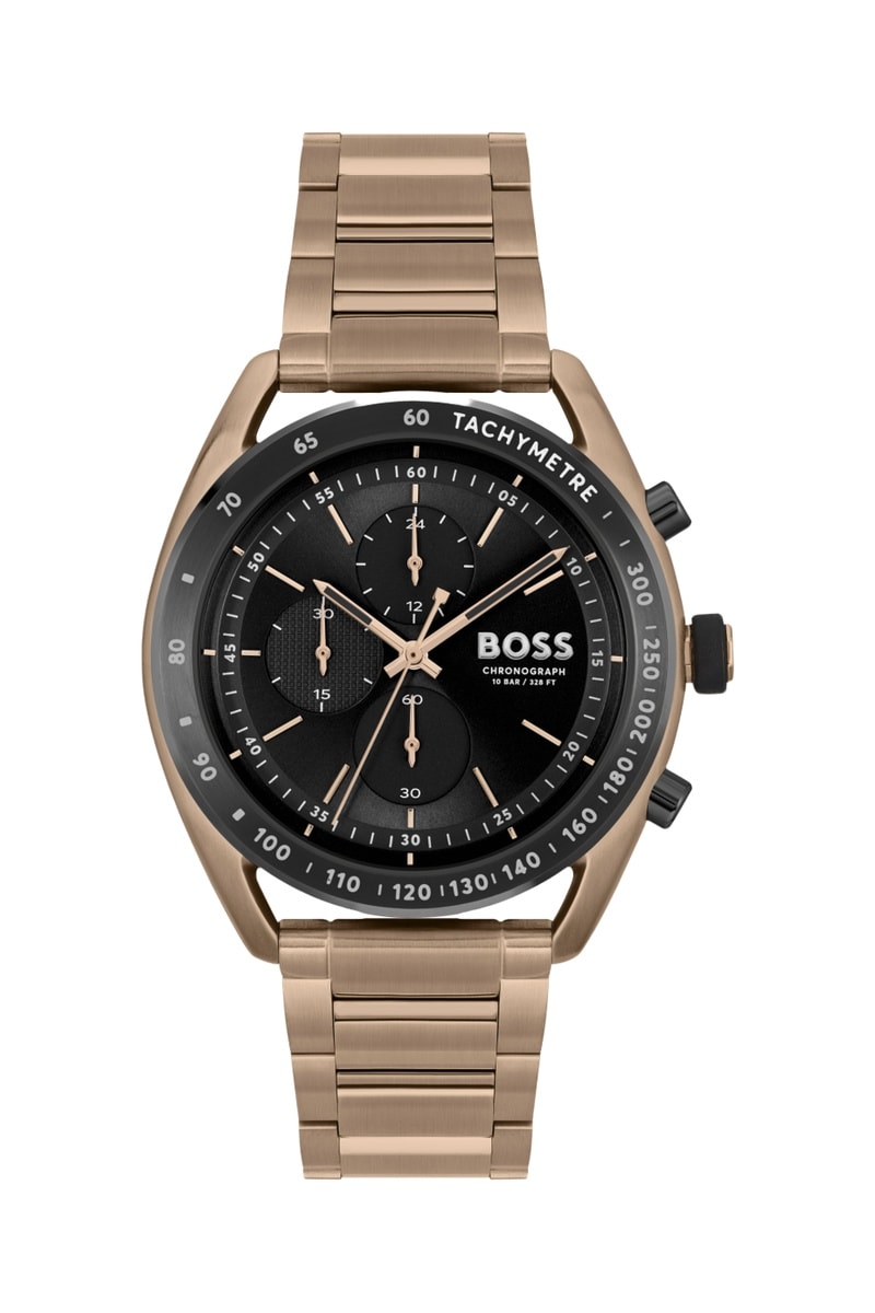 Montre à quartz en acier plaqué ion or jaune - Chronographe et tachymètre - Doré et noir