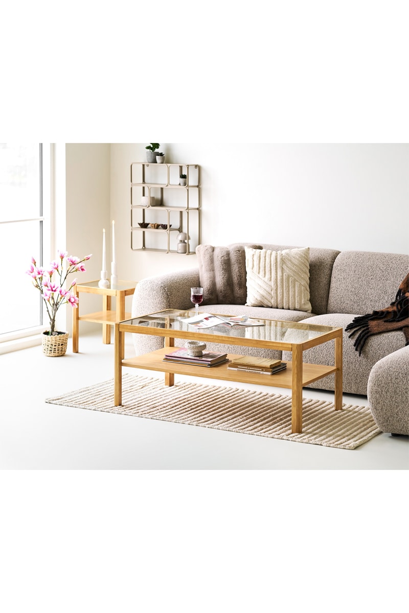 Table basse en verre avec revêtement en chêne Lourmarin - 110 x 45 x 60 cm