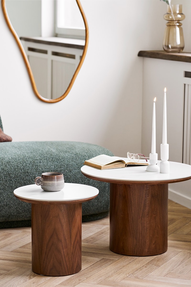 Table d'appoint en céramique avec revêtement en frêne Noli - 40 x 38 x 40 cm