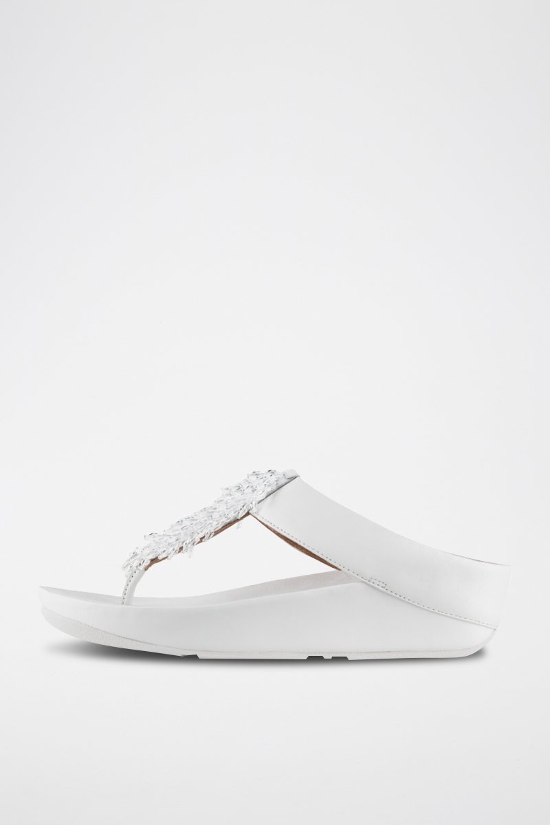 Tongs compensées en cuir.