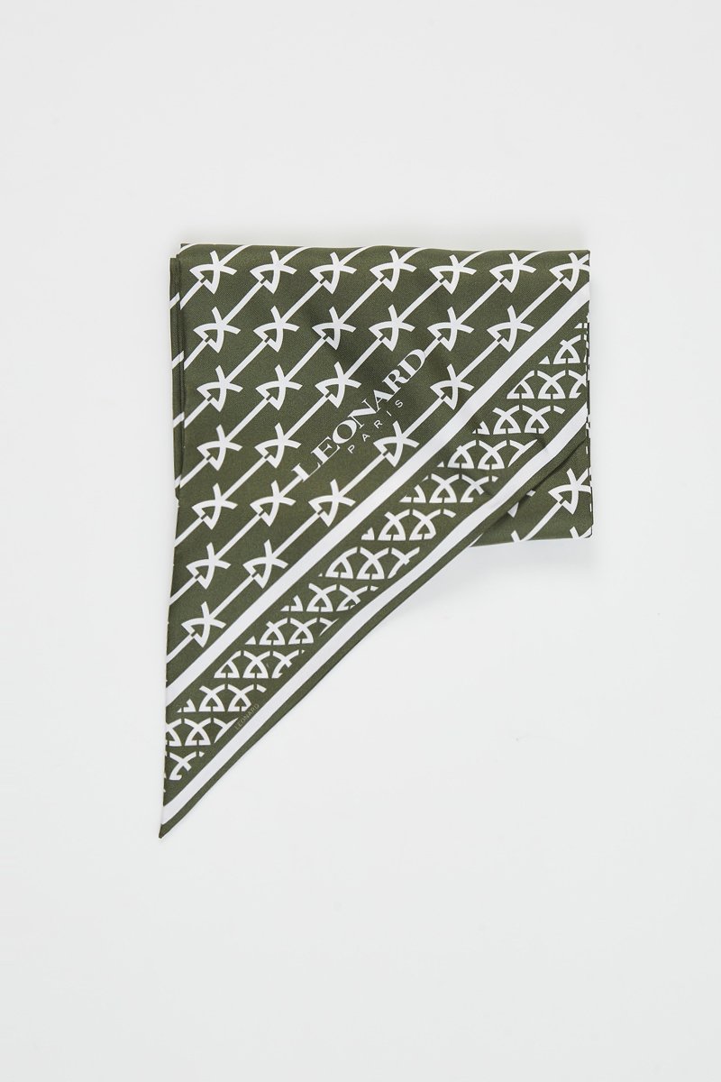 Bandeau en soie Micky - Kaki et blanc