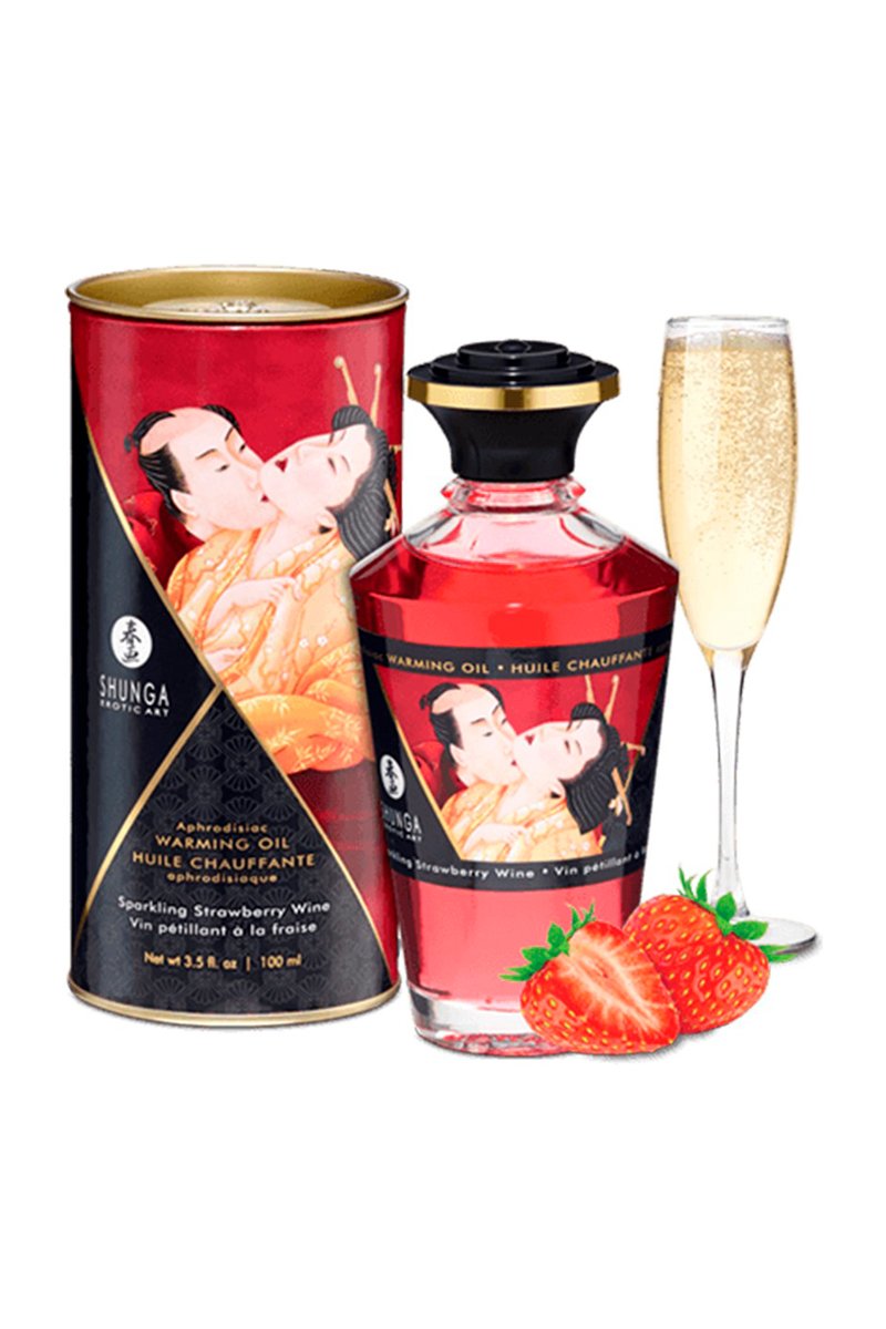Huile chauffante comestible - Fraise et vin pétillant - 100 ml