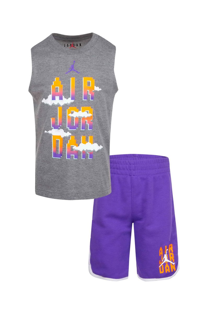 Débardeur et bermuda - Blanc, orange, violet et gris