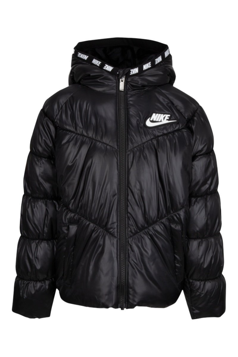 Doudoune à capuche avec logo.
