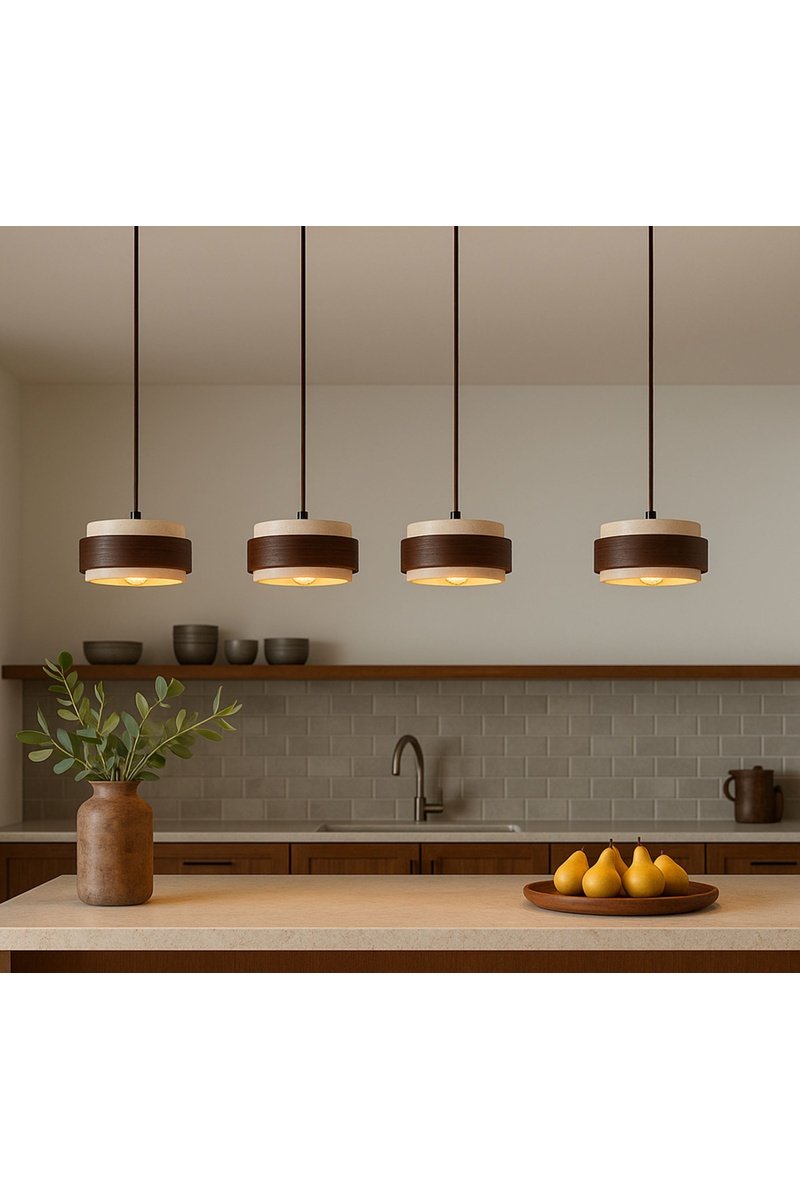 Suspension en bois et travertin - Beige
