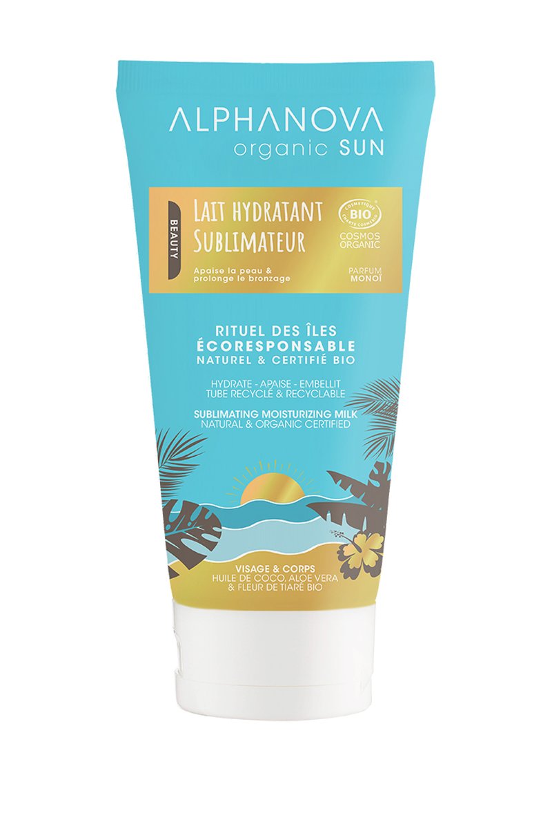L’ extrait de fleurs de Tiaré bio de Polynésie et l’ huile de coco bio nourrissent la peau et subliment le bronzage.