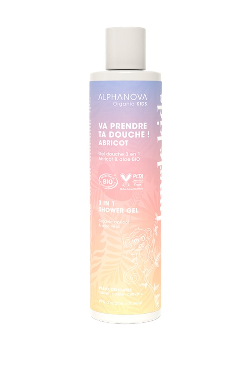 Gel douche bio Alphanova kids - Abricot - Peaux délicates - 250 ml