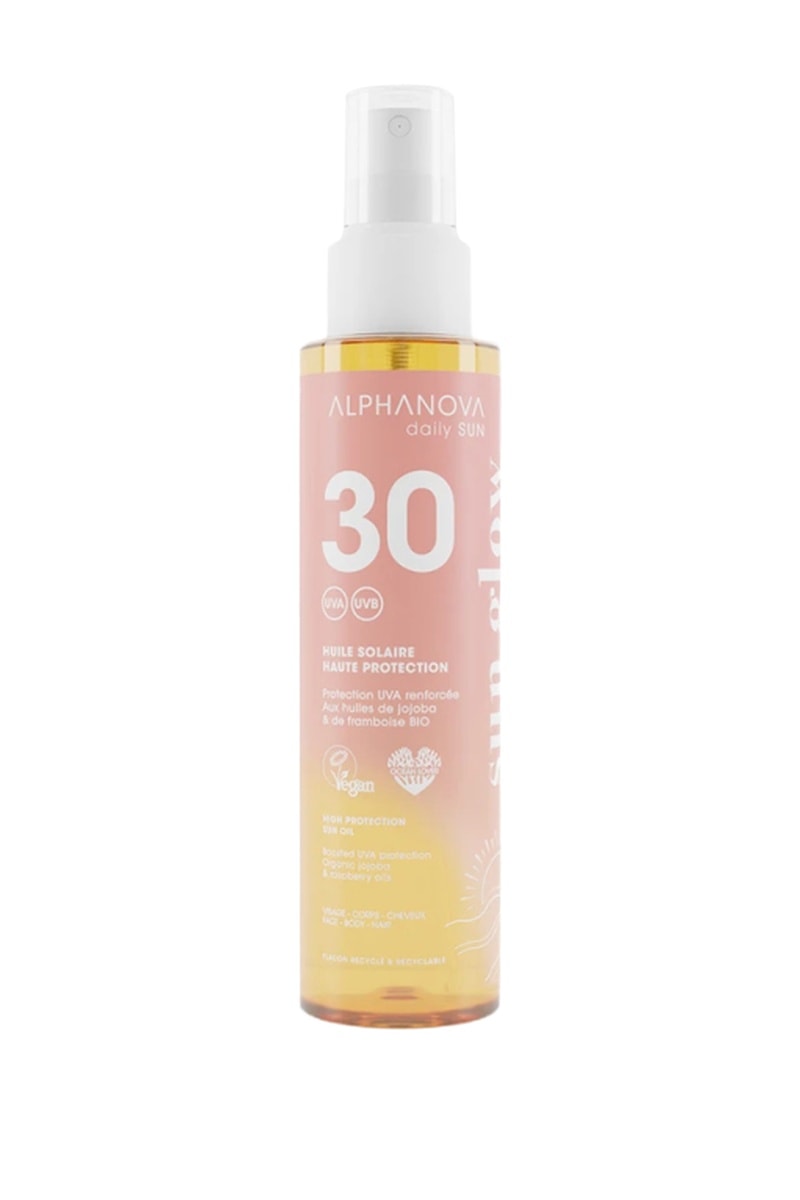 Ingrédients : brassica Campestris Seed Oil Bio, Triethyl Citrate, Dicaprylyl Carbonate, Diethylamino Hydroxybenzoyl Hexyl Benzoate, Ethylhexyl Triazone, Bis-Ethylhexyloxyphenol Methoxyphenyl Triazine, Simmondsia Chinensis Seed Oil Bio, Parfum, Cocos Nucifera Oil Bio, Rubus Idaeus Seed Oil Bio, Helianthus Annuus Seed Oil, Tocopherol.