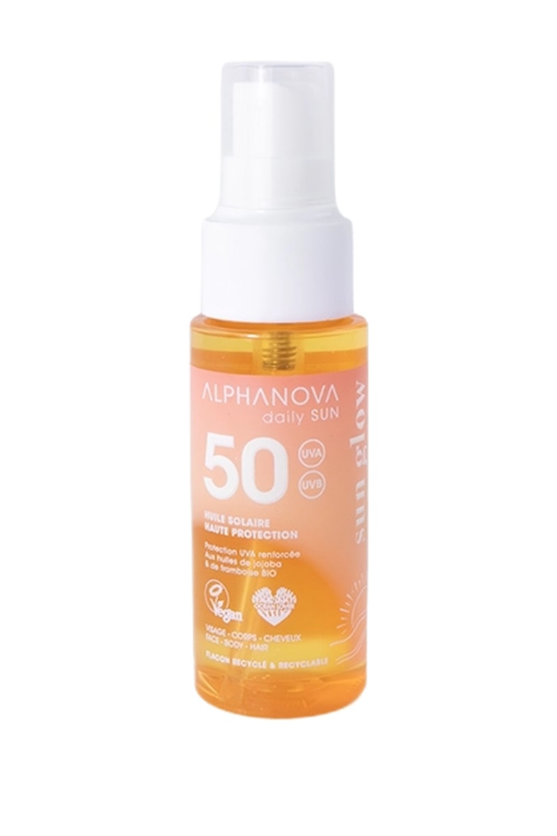 Ingrédients : dicaprylyl Carbonate, Triethyl Citrate, Brassica Campestris Seed Oil Bio, Bis-Ethylhexyloxyphenol Methoxyphenyl Triazine, Diethylamino Hydroxybenzoyl Hexyl Benzoate, Ethylhexyl Triazone, Simmondsia Chinensis Seed Oil Bio, Parfum, Cocos Nucifera Oil Bio, Rubus Idaeus Seed Oil Bio, Helianthus Annuus Seed Oil, Tocopherol.