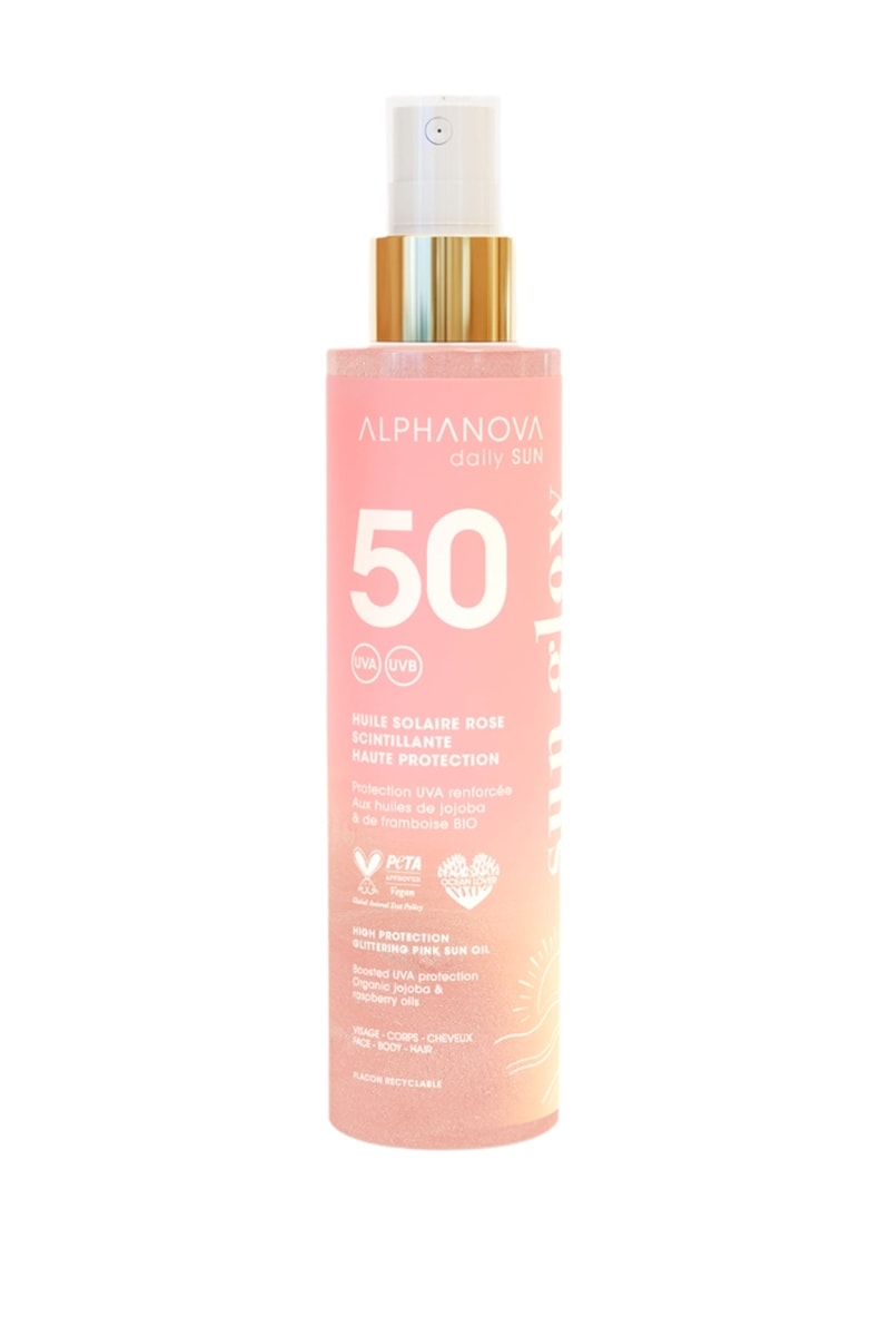 Huile solaire scintillante rose Alphanova SPF50 - 125 ml