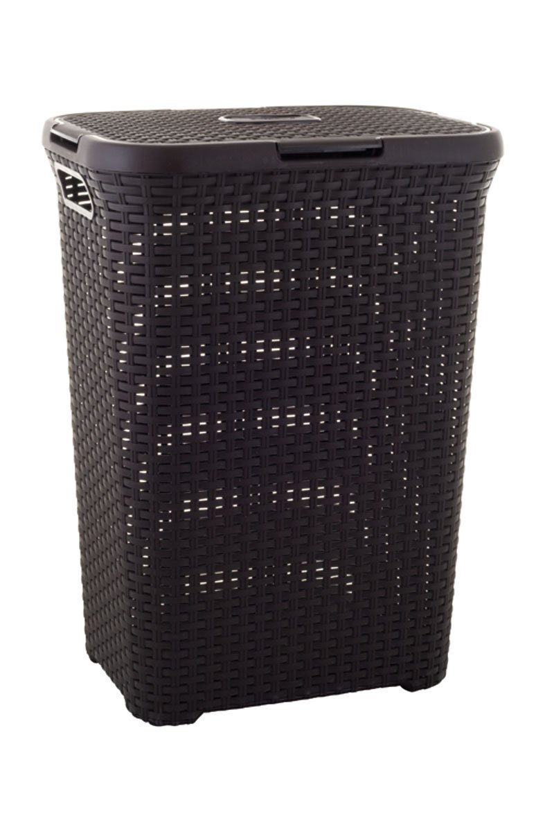 Coffre à linge aspect rotin - 60 l - Chocolat