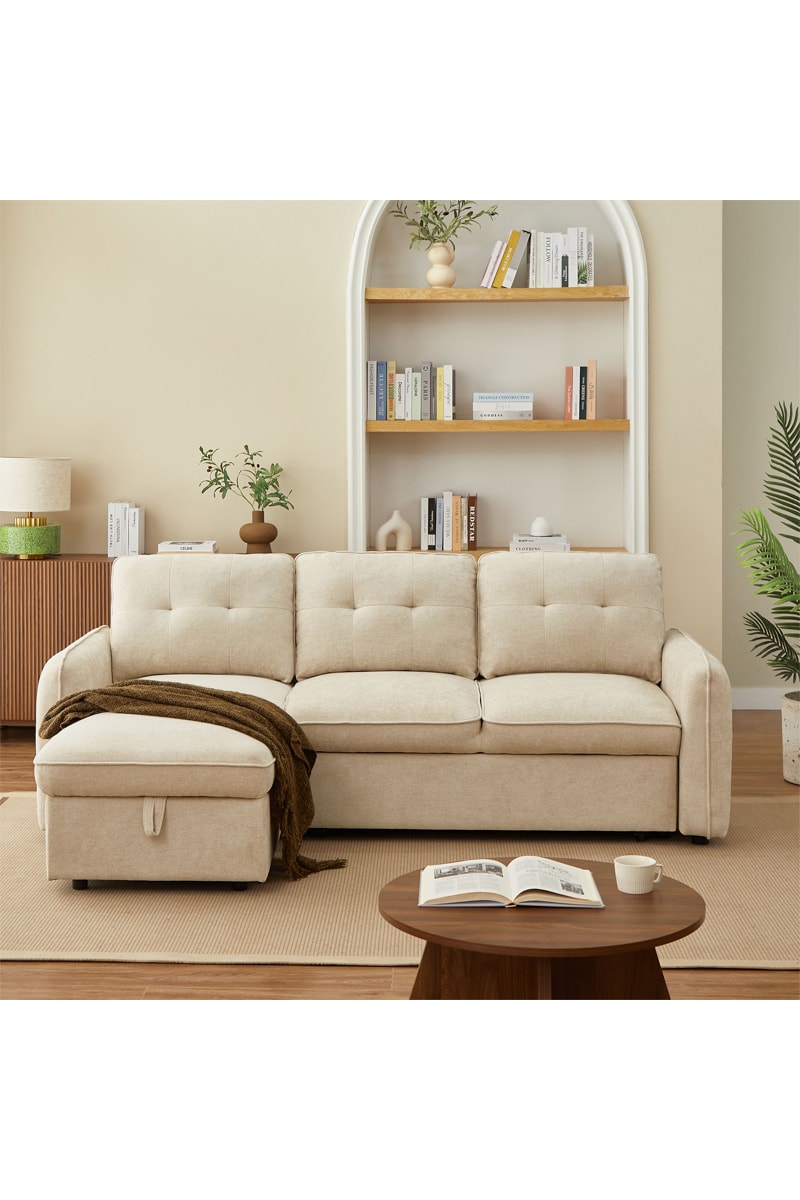 Canapé d'angle convertible et réversible en bois Impa - Beige - 4 places - En ployester