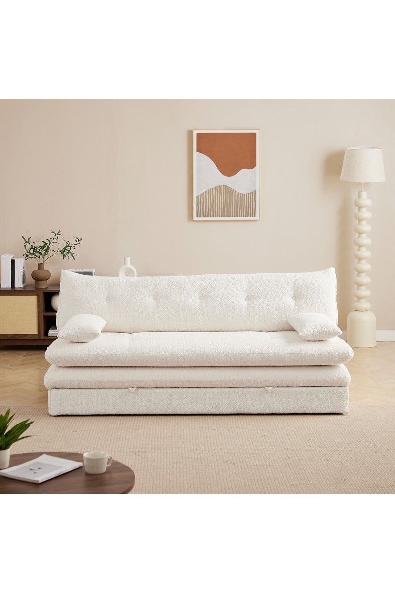 Canapé convertible Kiara - Beige - 3 places - En polyester