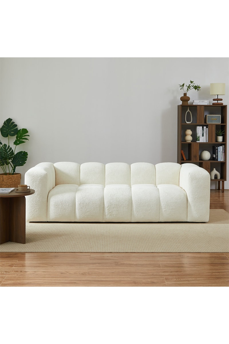 Canapé en bois massif Tasta - Blanc - 3 places - En tissu