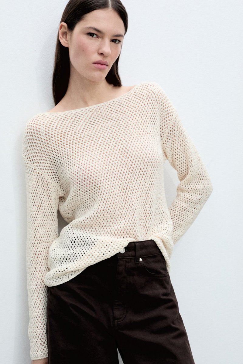 Pull col bateau en maille ajourée - Ecru