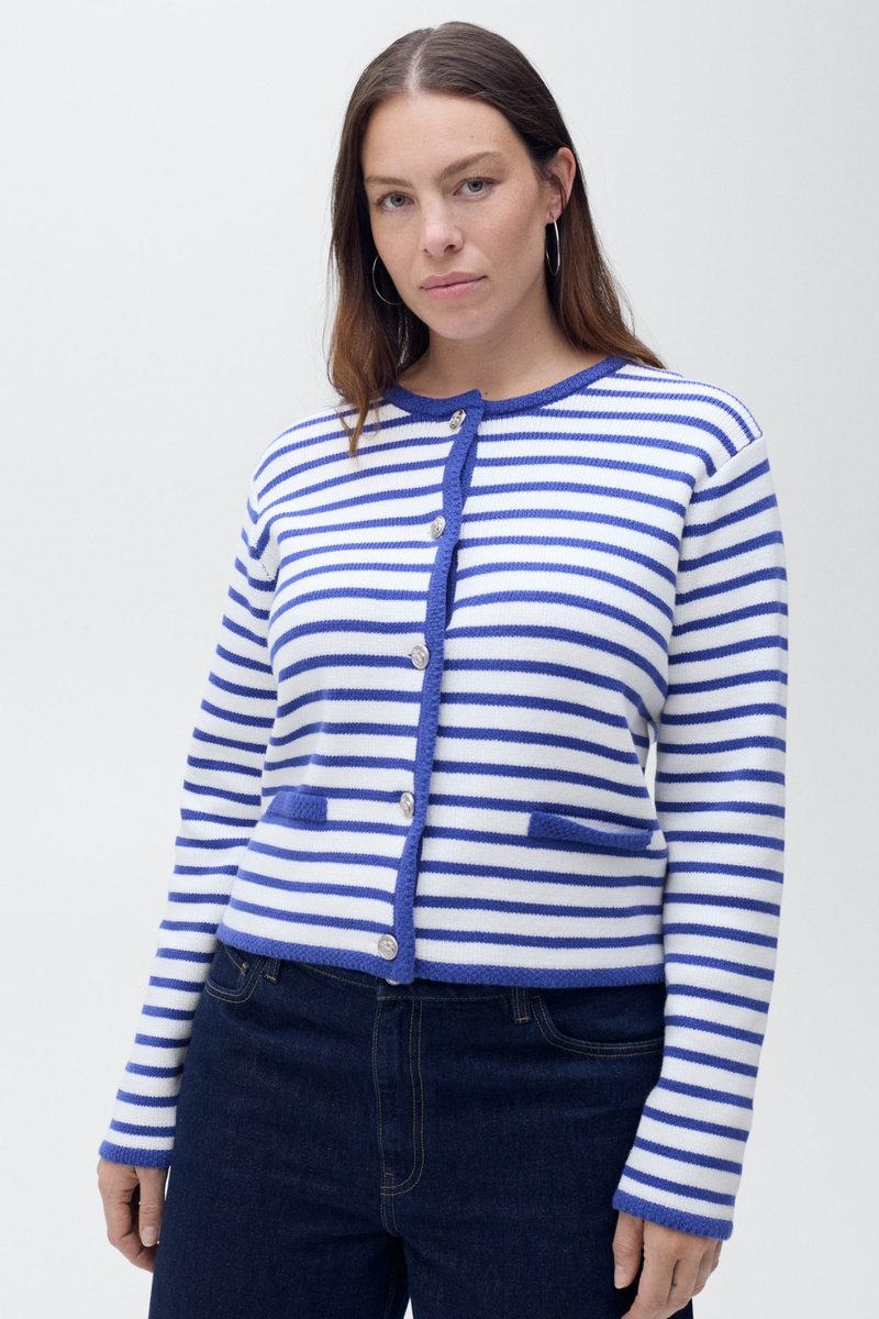 Cardigan maille rayures - Bleu