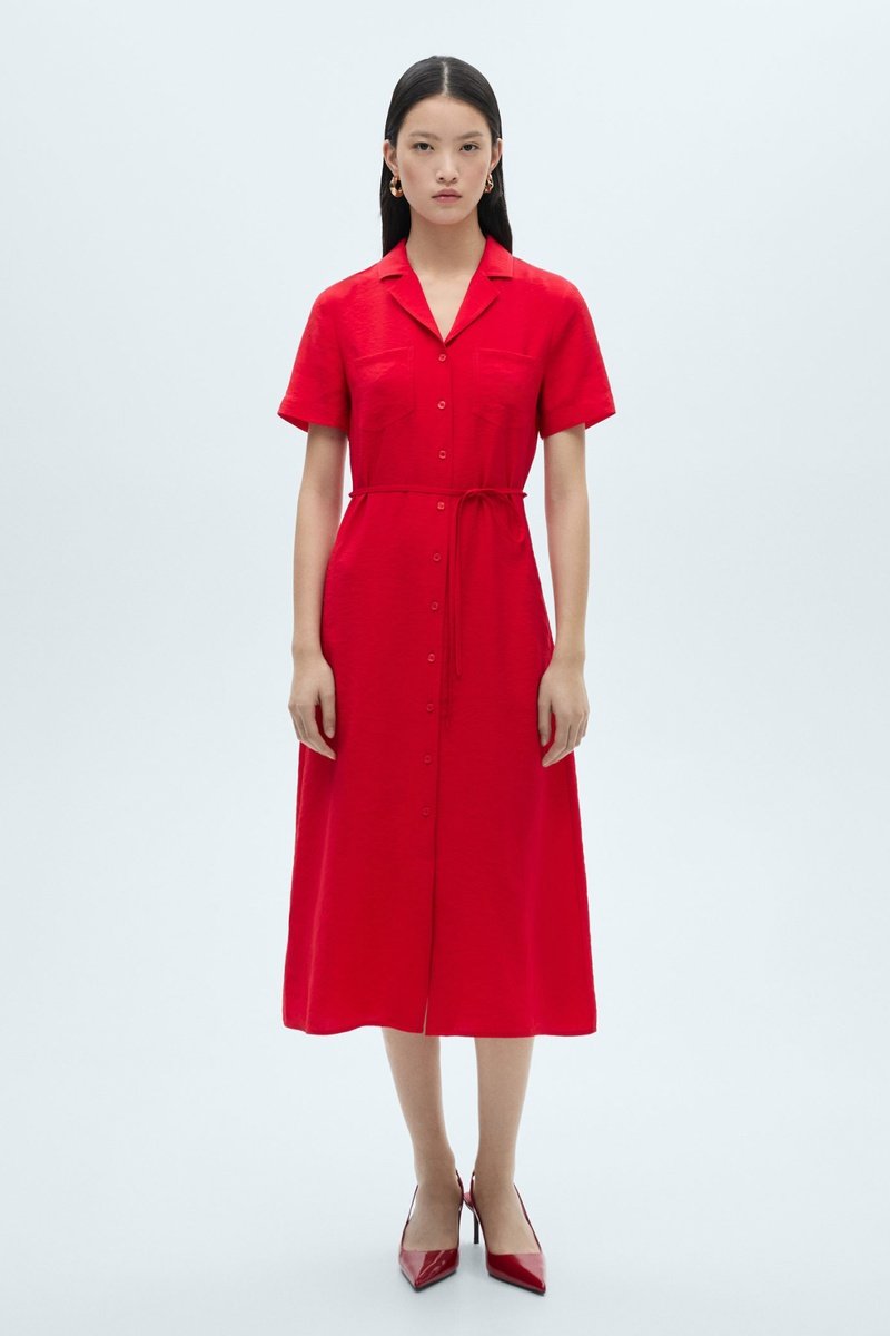 Robe chemisier poches - Rouge