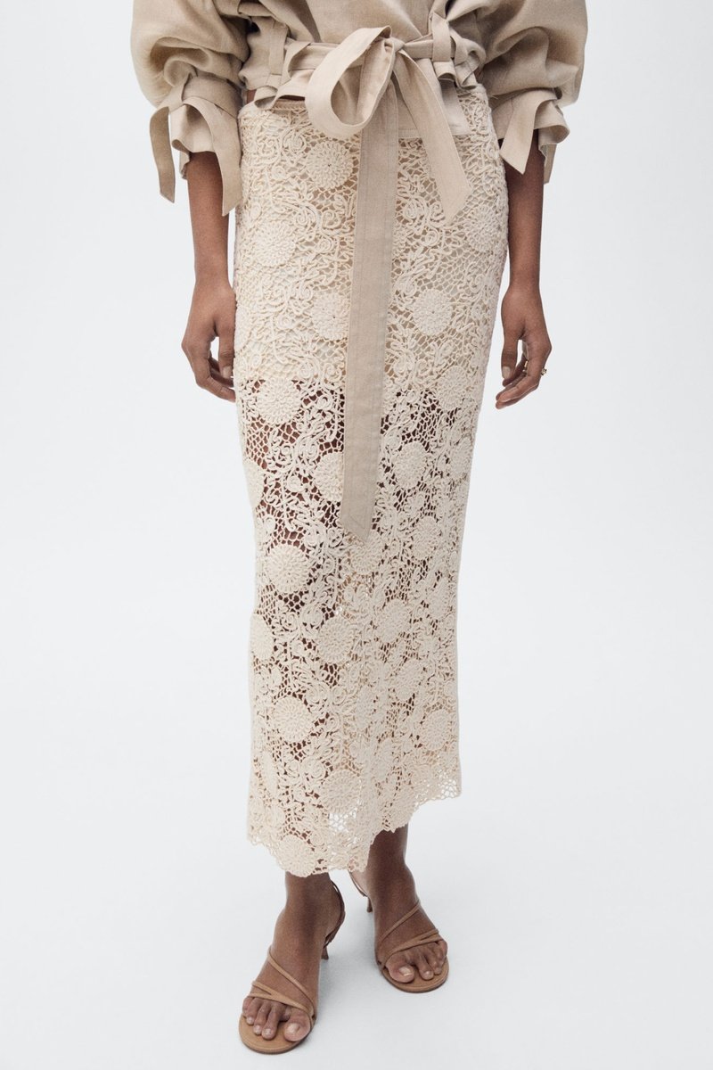 Jupe longue crochet à fleurs - Ecru