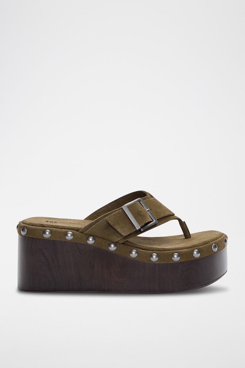 Sandales compensées en nubuck.