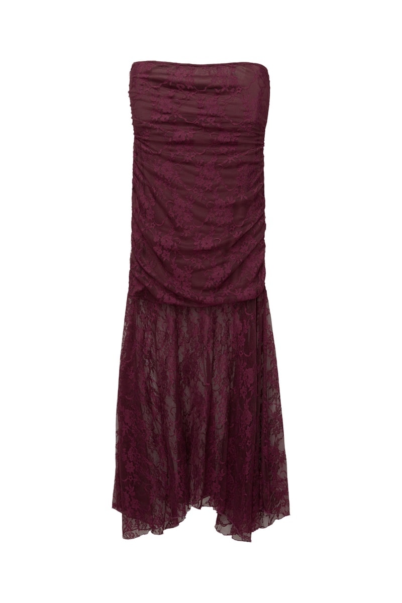 Robe bustier en dentelle - Bordeaux